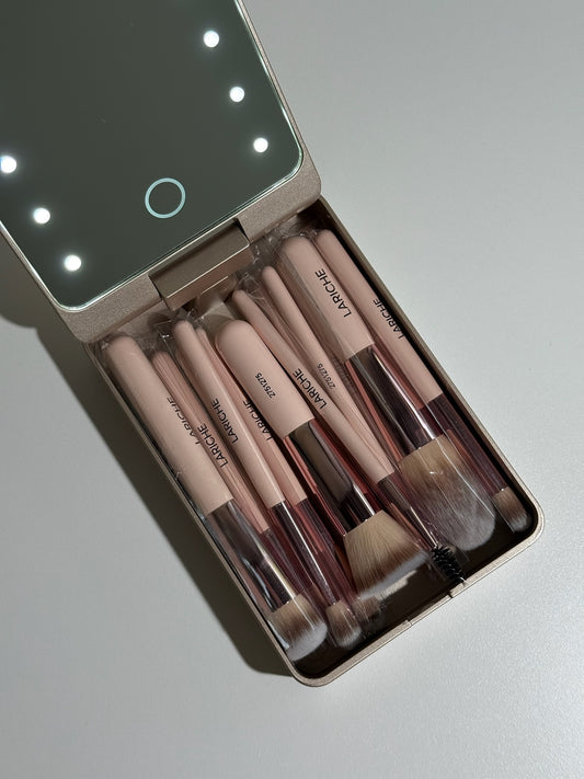 Beauty Coded Makeup Brush Set-Travel Case with Built-In Light-Up Mirror